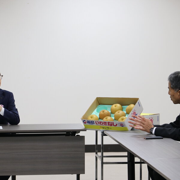 JA福島さくらは9月10日、福島県の内堀雅雄知事を訪ね、管内産の梨のベトナム輸出について報告し、梨を届けました。
