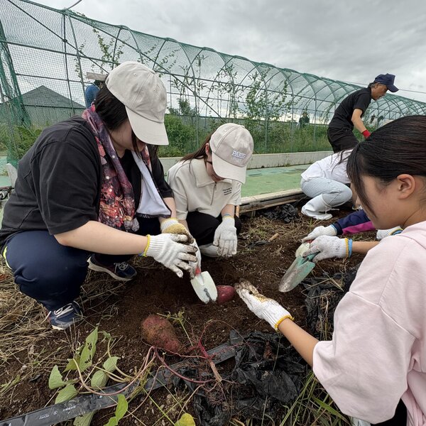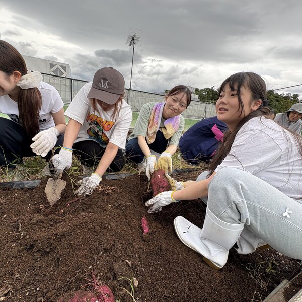 同学科では、食農教育の一環として野菜への理解を深めることを目的に毎年屋上菜園で野菜を育てており、今回収穫したサツマイモは5月に苗を定植しました。