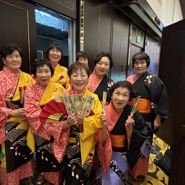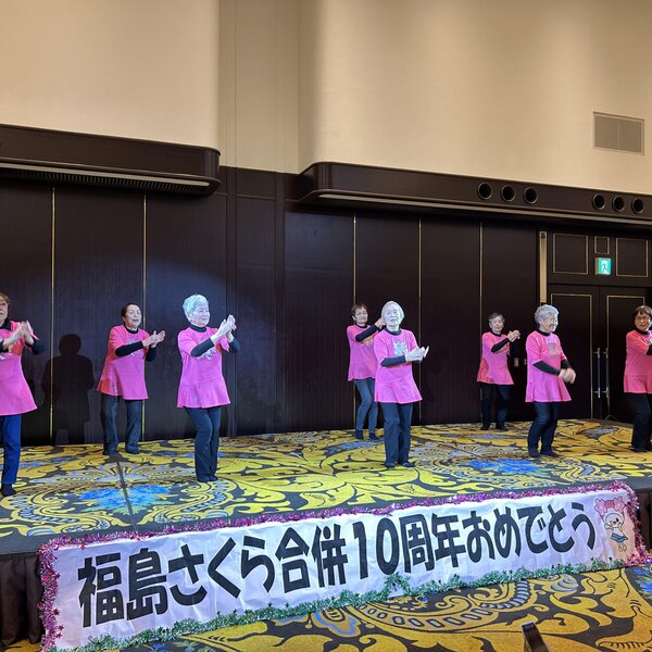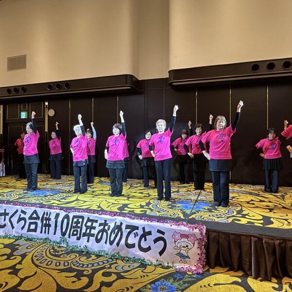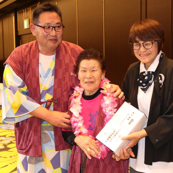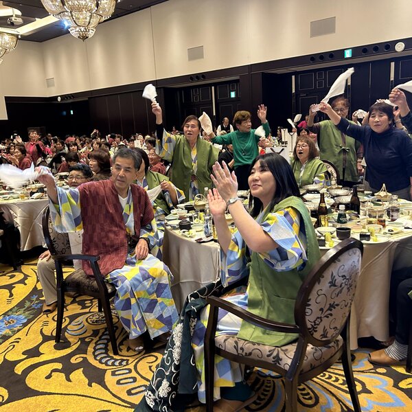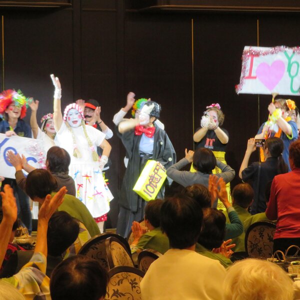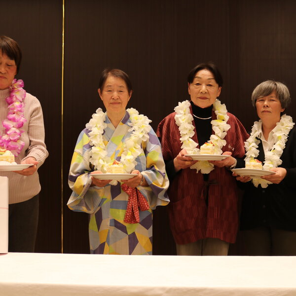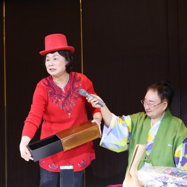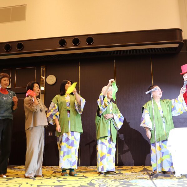 また、参加者最年長の高橋芳子さん(88歳)と、旅行中に誕生日を迎える部員4人へプレゼントを贈呈。その後、各地区がダンスやマジックを披露し、会場を盛り上げました。