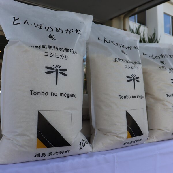 「とんぼのめがね米」は、広野町産特別栽培米コシヒカリをブランド化したもので、同町が童謡「とんぼのめがね」の舞台となっていることから名づけられました。現在は同町内で25人の生産者が栽培しています。