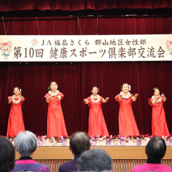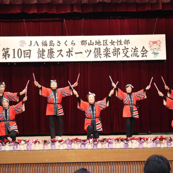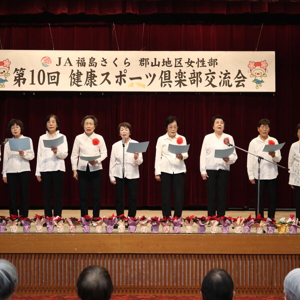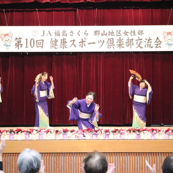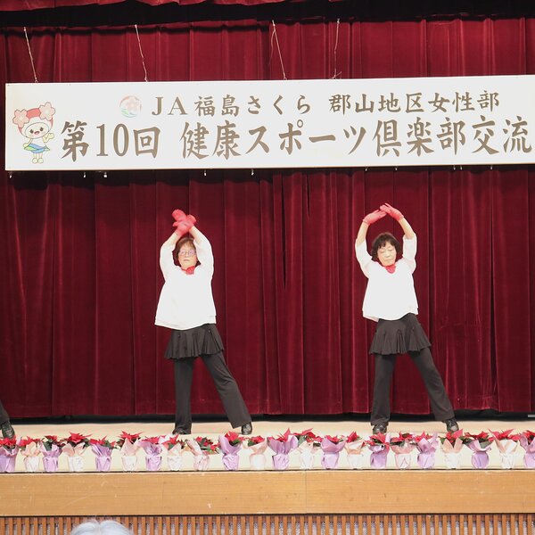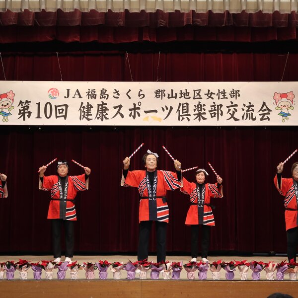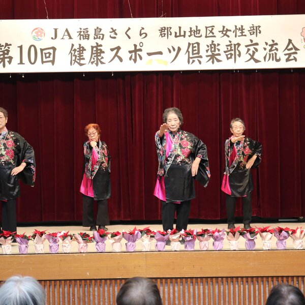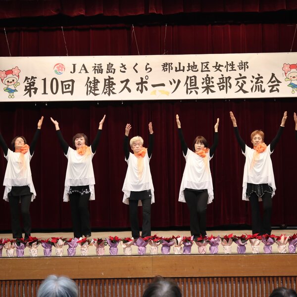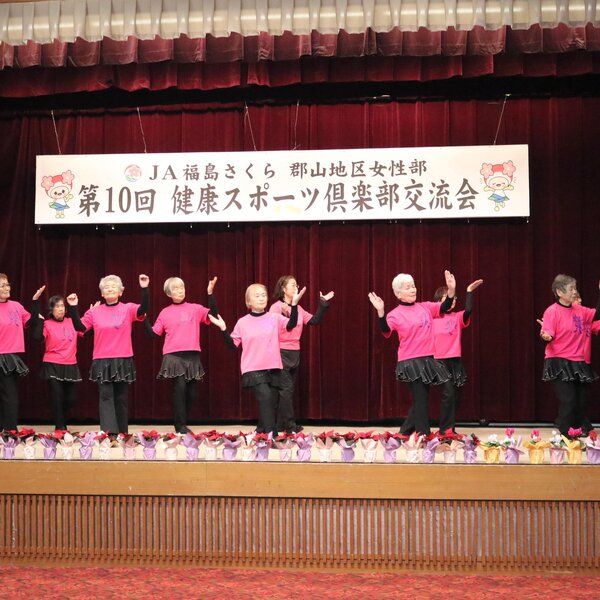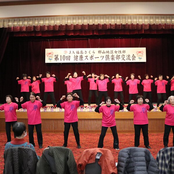 当JA郡山地区女性部健康スポーツ倶楽部は12月6日、郡山市のJA本店で第10回交流会を開き、同倶楽部の部員やJA役職員約230人が出席しました。
