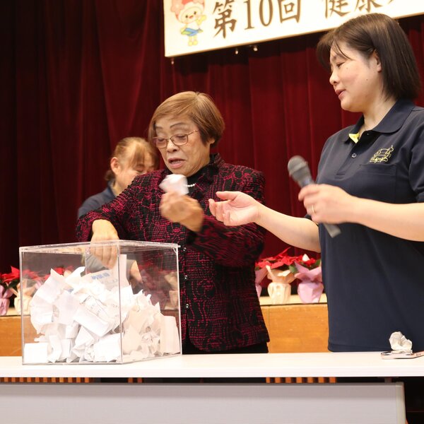 交流会終了後には抽選会を行い、当選した部員に花を贈呈しました。