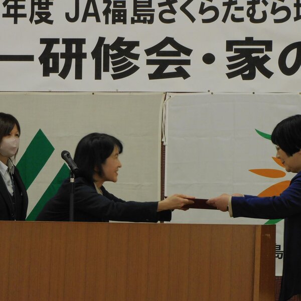 女性部活動体験発表では、船引総支部の三輪満里子さんが「JA女性部との出会い」をテーマに発表しました。三輪さんは来年のJA福島女性部家の光大会「女性部活動体験発表」にたむら地区代表として出場します。