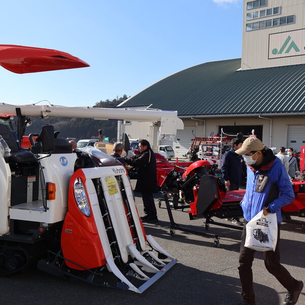展示会では、生産者のニーズに合わせた最新のICT農機や低コスト農機が多数出展されたほか、農薬散布機などの小型農業機械や、耕うん爪、作業用手袋などの消耗品を特別価格で販売しました。