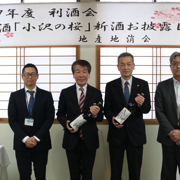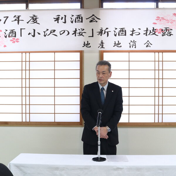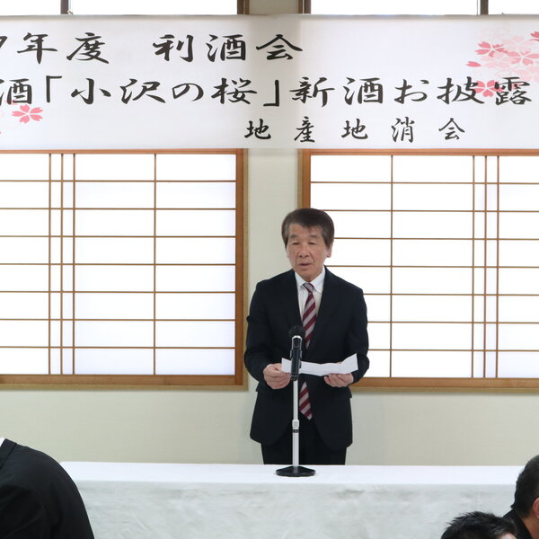 当JAの郡司源一常務は「純米酒『小沢の桜』はリピーターが多く今年も多くの注文を頂いている。このお酒が皆様に親しまれ、地域に根付いていく事を願う」と話しました。