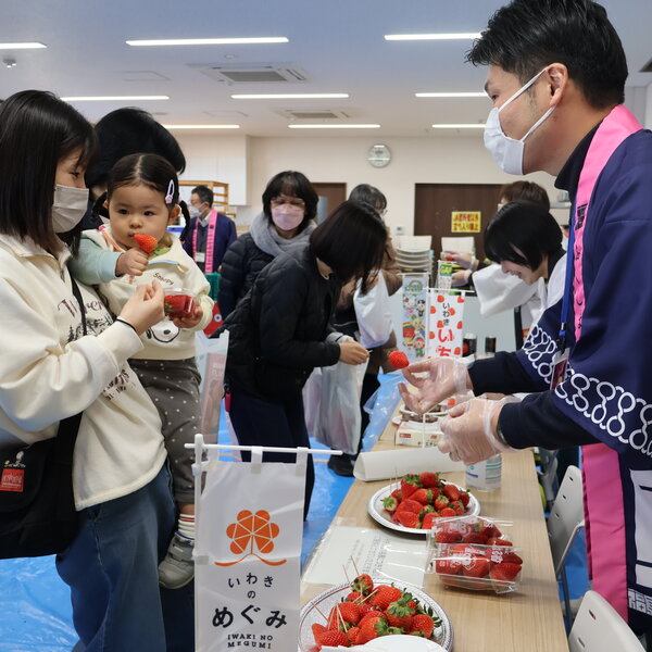 福島県いわき農林事務所は2月14日、いわき市の当JA農産物直売所ファーマーズマーケットいがっぺで、第4回「おいしいふくしまいただきます!」キャンペーンを実施しました。同キャンペーンは、県産農林水産物の安全性やおいしさを周知し、消費拡大と地産地消の推進を目的に行っています。